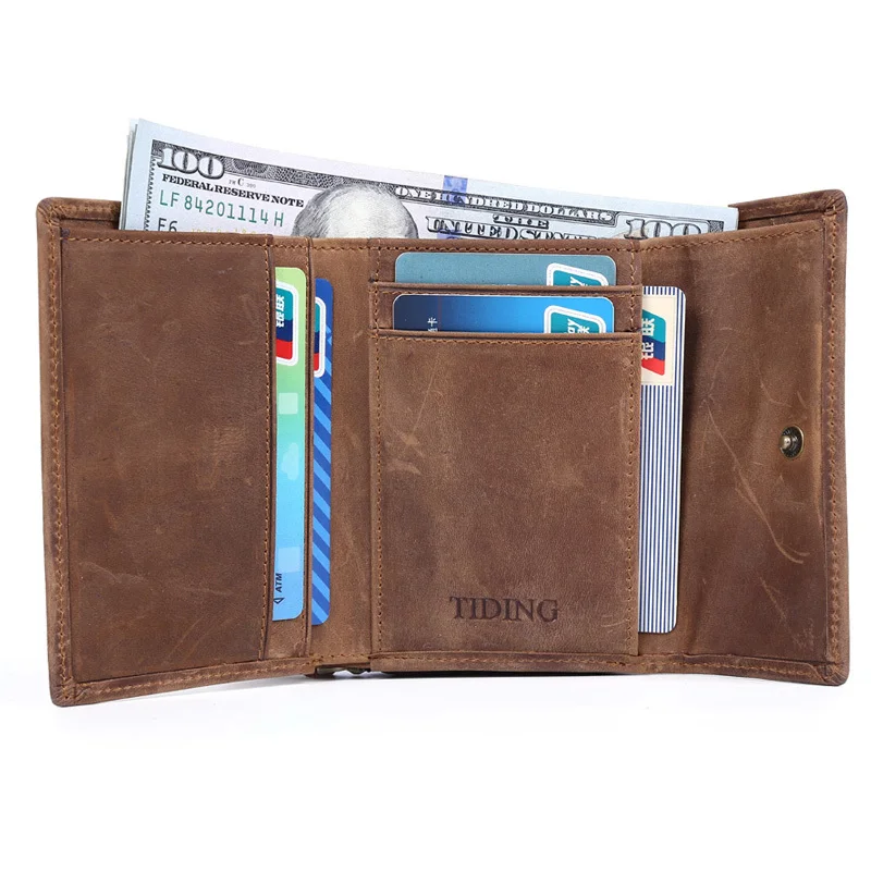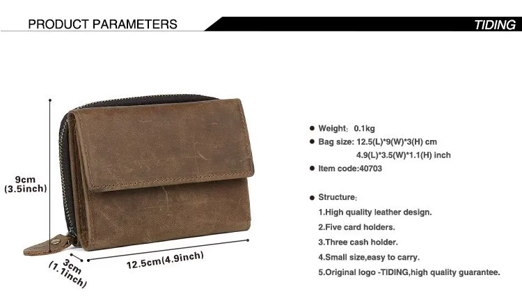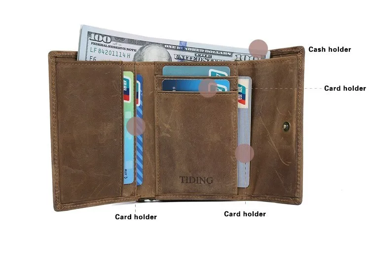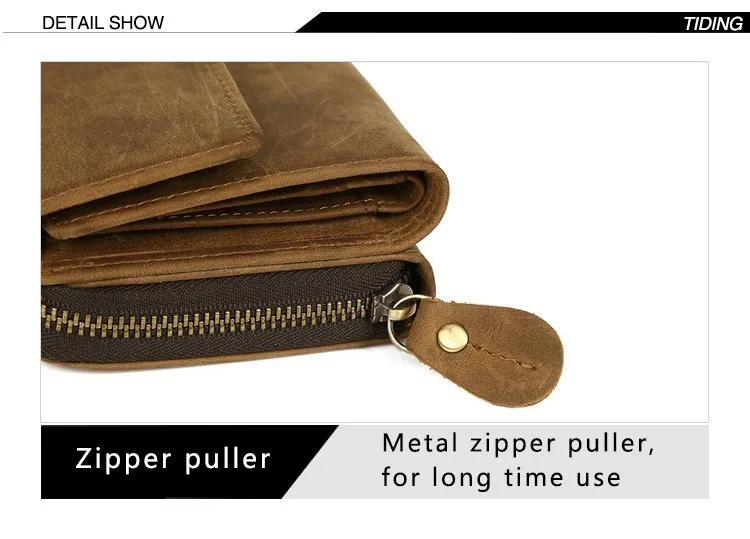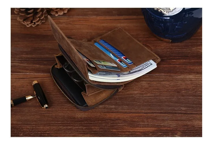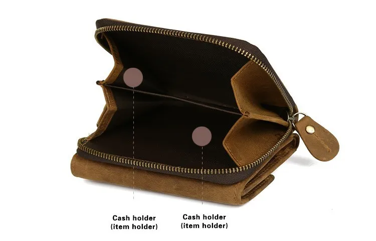 Structure:1 note compartment, 5 card holders, 1 coin zipper pocket , etc. .