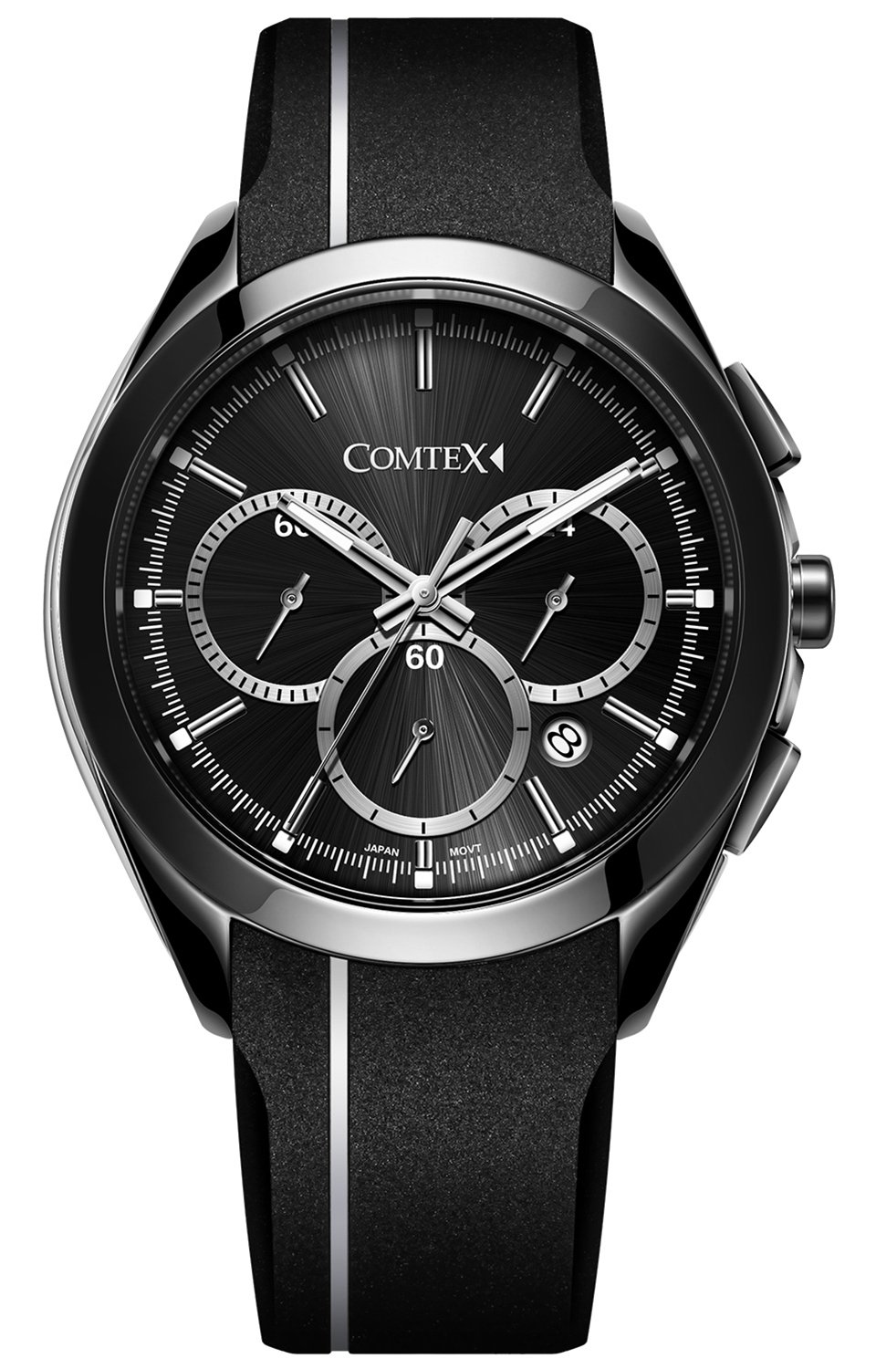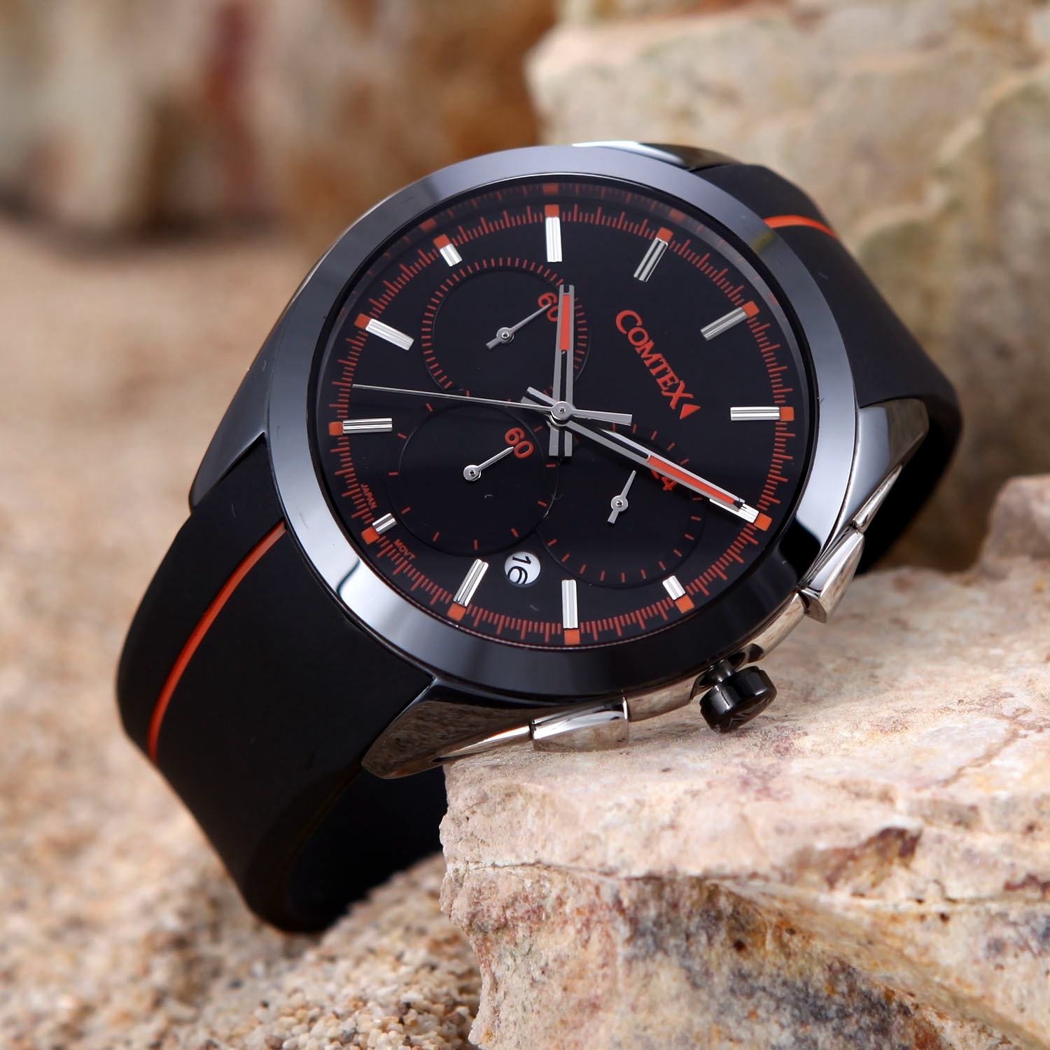 1, this is a wristwatch featuring a combination of a black ceramic case and a silicon bunt, fashionable.