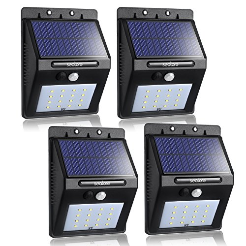 Seatore Solar Lights, 16 LED Waterproof Wireless Solar Motion Sensor Lights Outdoor for Patio, Deck, Yard, Garden, 4-Pack