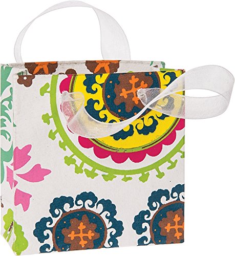Luna Bazaar Small Paper Gift Bag (3.5-Inch, White Suzani Design)