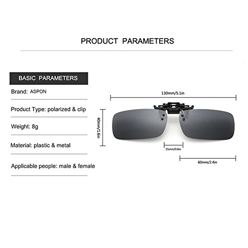 Clip-on Sunglasses, Aspon Unisex Polarized Frameless Rectangle Lens Flip Up Prescription Sunglasses Eyeglass