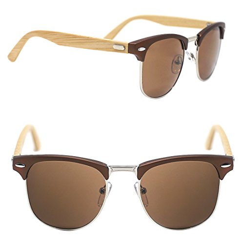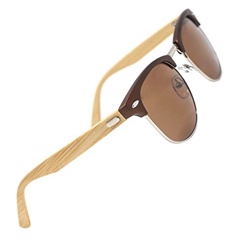 Slocyclub Vintage Wood Semi Rimless Sunglasses