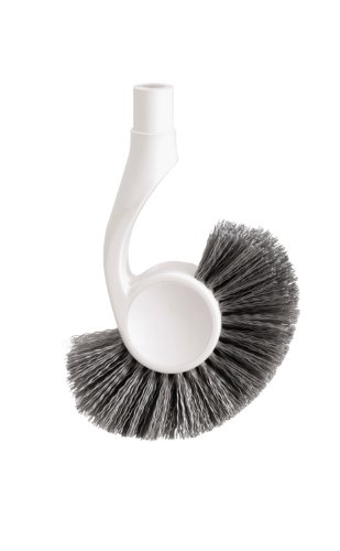 - Brush head uses stiff outer bristles for under the rim and dense center bristles for regular cleaning