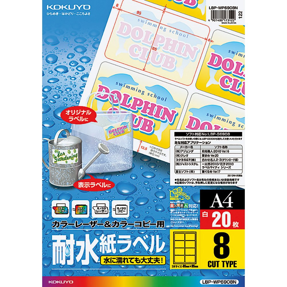 20 pieces of paper thickness ... 210g / LBP-WP6908N A4 8 imposition Kokuyo color laser copy & waterproof paper label (japan import)