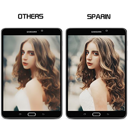 -. Feature : Specially designed for Samsung Galaxy Tab S2 8.0 (SM-T710), fit your tablet's screen perfectly / Easy installation: Precise cut and design, automatically attach to the screen smoothly, hassle-free and bubble-free / Repeatable installation: If there is spot, bubble, or section that doesn't adhere, peel it off and install again / Protect against dirt, dust and scratches, no influence on the ultimate clarity and touchscreen accuracy / 99% High Definition Clarity, 99% light transmittance and explosion-proof 9H hardness, Sparin provide lifetime warranty