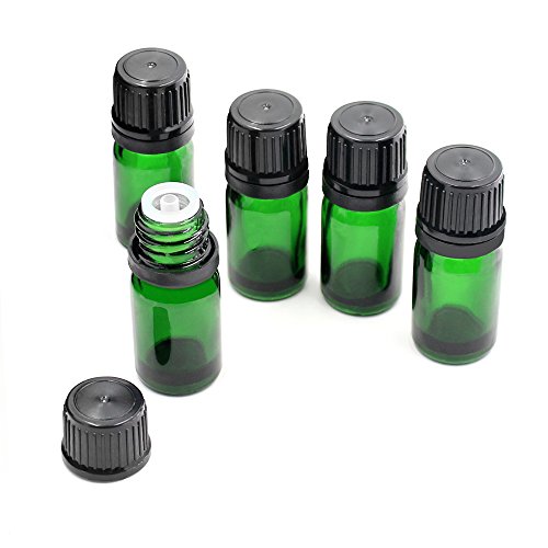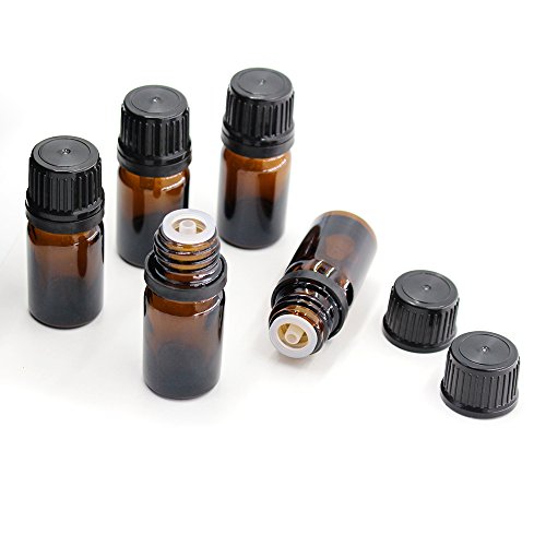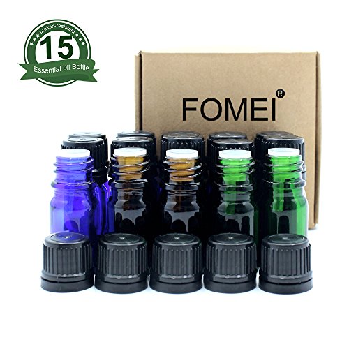 Fomei 15 Packs Oil Bottles for Essential Oils 5 ml Amber Glass Vials Bottles, with Orifice Reducers and Black Caps, With Plastic Transfer Eye droppers