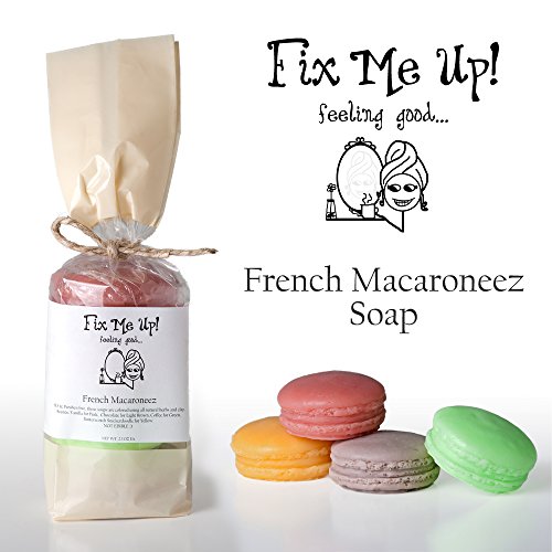 SLS & Paraben free, these soaps are colored using all natural herbs and clay. Scents: Vanilla for Pink, Chocolate for Light Brown, Coffee for Green, Butterscotch Snickerdoodle for Yellow NOT EDIBLE :)Feature