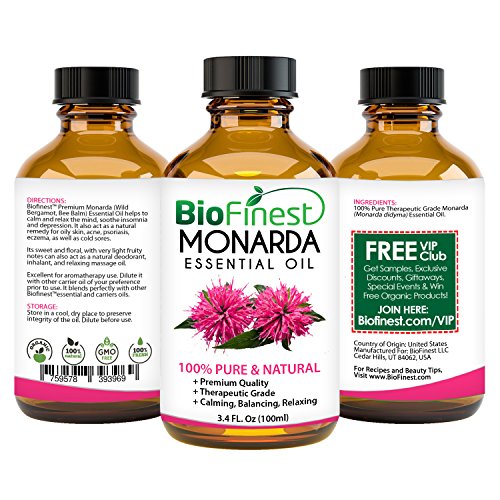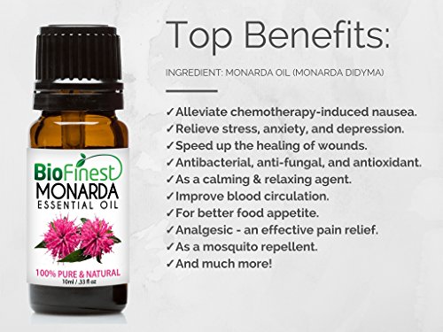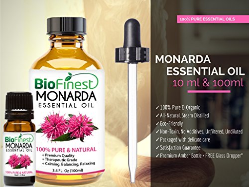 -. Feature : PREMIUM QUALITY MONARDA OIL: 100% Pure, Non-Toxic, No Additives, Unfiltered and Undiluted with No Fillers. Vegan certified, organic, paraben free and cruelty free. Safe for family and home use. / FREE E-BOOK QUICK START GUIDE (worth $37): Exclusive access to Biofinest comprehensive essential oil guide "100 Ways To Use Essential Oil". Printable and beginner friendly. Make blends with your favourite essential oils, and enjoy home aromatherapy today! / IDEAL FOR HOME & FAMILY: Aromatherapy, Gift, Custom Massage and Body Oils, Vaporizers, Diffusers, Oil Burners, Humidifiers Inhalation, Perfume, Blends, Spa and Home Care, Cleaning Products, allergen-free alternative to candles or incense Uses. / 100% BEST VALUE FOR YOUR MONEY: Comes with premium euro dropper cap for easy dispensing. Packaged in USA with Sealed Amber Bottle. No Leakage or Dripping. We are eco-friendly USA company who stand behind our brand. Try our products risk-free with 100% money back guarantee. / 100+ BESTSELLERS: Basil, Bergamot, Cinnamon, Citronella, Clary Sage, Clove Leaf, Coriander, Cypress, Eucalyptus, Frankincense, Geranium, Ginger, Green Tea, Jasmine, Juniper Berry, Lavender, Lemon, Lemongrass, Lily Flower, Mandarin, Marjoram, Myrrh, Neroli, Orange, Oregano, Patchouli, Peppermint, Pine, Roman Chamomile, Rosemary, Sandalwood, Spearmint, Tea Tree, Thyme, Vetiver, Wintergreen, Ylang Ylang, Aloe Vera, Argan, Coconut, Evening Primrose, Flaxseed, Grapeseed, Jojoba, Pomegranate seed