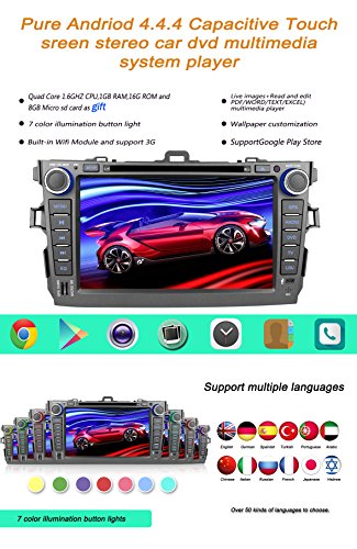 - Title : YINUO 8 inch Quad Core 1024*600 Android 4.4.4 Capacitive Touch Screen Car DVD Player GPS Stereo for Toyota Corolla 2007-2011 In Dash Navigation AV Receiver support AM FM Radio/iPhone Screen Mirroring/Steering Wheel Control/Bluetooth/Built-in Wifi Hotspots/3G/OBD2/DVR/AV-IN with Free External Mic & 8GB Map Card