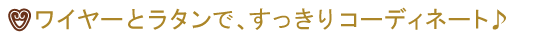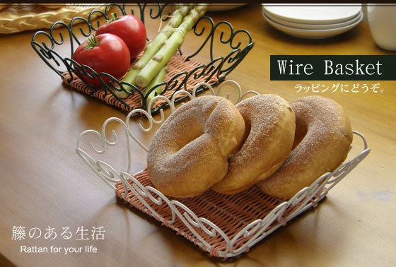 | 籐のある生活-Wire-シリーズ。 シャープな曲線模様とキレイに編まれたラタンが、バスケットの中に置いたものを引き立ててくれる♪見た目がとてもさわやかなラッピング用バスケットの登場です。大切な方への贈り物のラッピングはもちろん、お店の商品の陳列やアメニティーグッツを入れたりと用途いろいろなバスケットです。 | ||||||