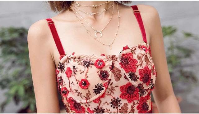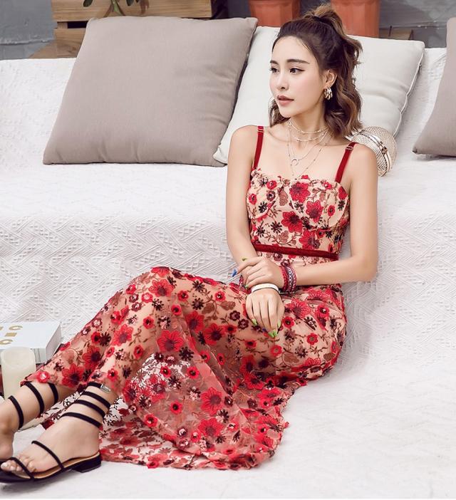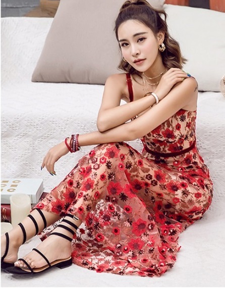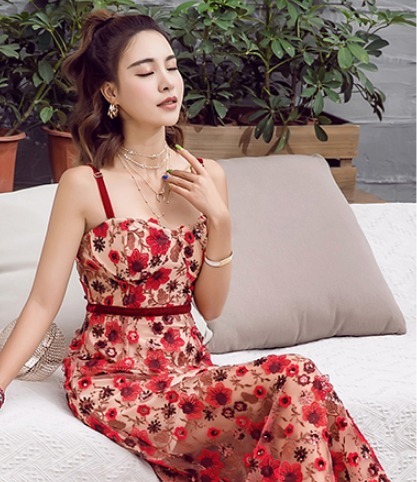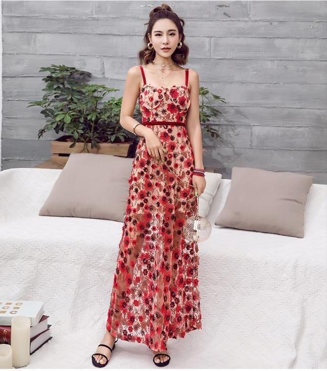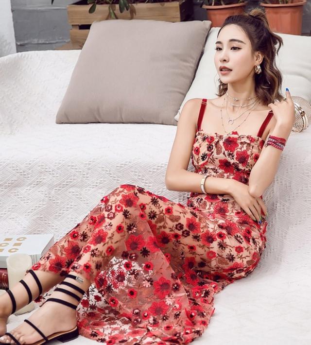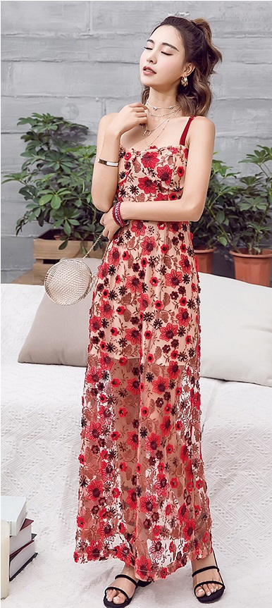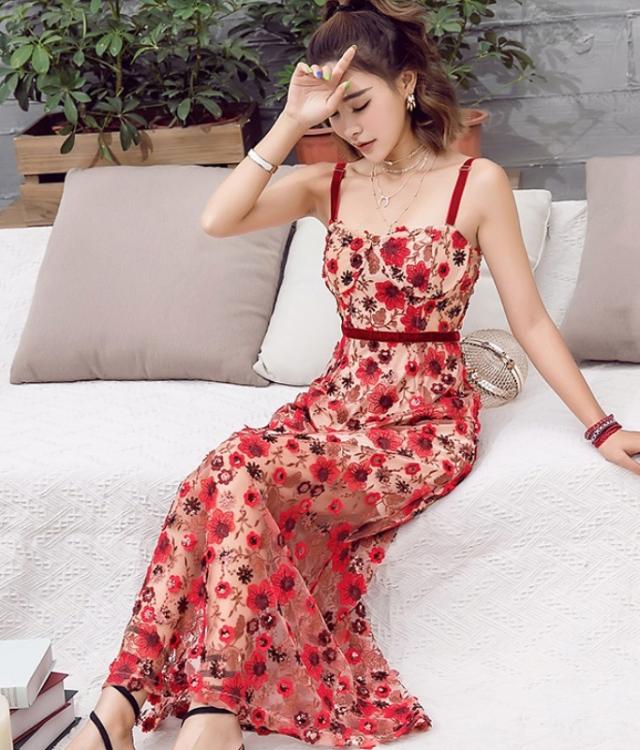花柄 マキシ ノースリーブ 刺繍 エレガント ドレス