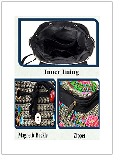 -. Feature : Beautifully crafted with Canvas and Dacron material,which is durable£¬wearproof and environmentally friendly non-toxic. / String & Magnetic Buckle Closure Main pocket + Zippered front pocket + Inner zippered compartment for valuable kits. / Height 26cm/10.2inch, Width 23cm/9.0inch, thickness 14cm/5.5inch. / Enough room for your wallet, cellphone, sunglasses, cosmetic even your folding umbrella. / The finest embroidery, traditional pattern design, distinctive oriental style of 6 Assorted Colors.
