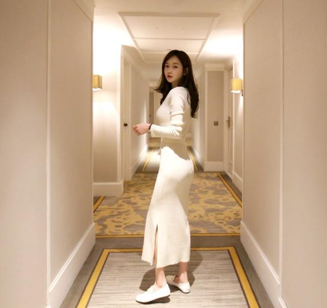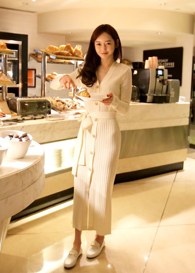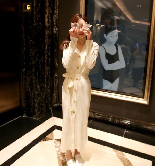 キュッと絞ったウエストリボンが可愛いニットの韓国ワンピースです。