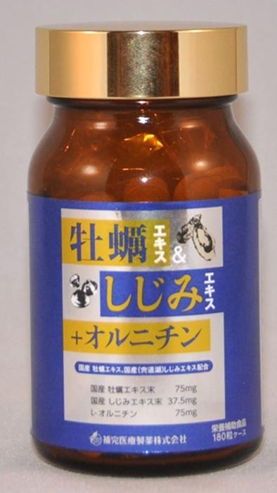 | 国産牡蠣エキス、国産(宍道湖)しじみエキス、しじみの栄養成分の一種であるオルニチンを配合した栄養補助食品です。 |