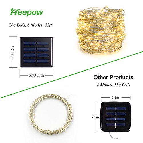 Length of 72 feet: HEEPOW solar fairy lights with 200 leds is totally about 72 feet which is long enough to decorate most place you want;