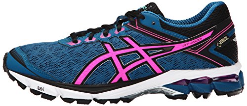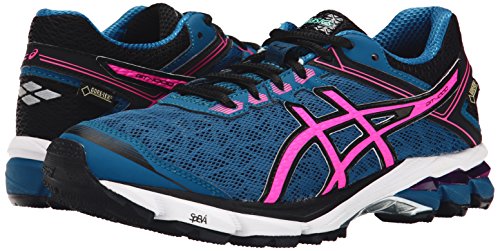 -. Binding : Shoes -. Brand : ASICS -. Color : Mosaic Blue/Hot Pink/Black -. Department : womens -. Feature : Impact Guidance System (I.G.S.®) - Linked componentry enhances the foot's natural gait from heel strike to toe-off. / Rearfoot and Forefoot GEL® Cushioning System - Attenuates shock during impact and toe-off phases, and allows movement in multiple planes as the foot transitions through the gait cycle. / SpEVA® Midsole Material - Improves bounce back characteristics and decreases midsole breakdown. / DuoMax® Support System - Dual density midsole system enhances support and stability. / Guidance Line® - Vertical flex groove decouples the tooling along the line of progression for enhanced gait efficiency. -. Label : ASICS Running Footwear -. Manufacturer : ASICS Running Footwear -. Model : GT-1000(TM) 4 G-TX-W -. MPN : T5B7N-434 -. NumberOfItems : 1 -. PackageQuantity : 1 -. PartNumber : T5B7N-434 -. ProductGroup : Shoes -. ProductTypeName : SHOES -. Publisher : ASICS Running Footwear -. Studio : ASICS Running Footwear -. Title : ASICS Women's GT 1000 4 G TX Running Shoe