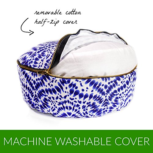 MACHINE WASHABLE AND PORTABLE: Say goodbye to ineffective spot cleaning. When your zafu is ready for a little freshening up, just remove the meditation pillow cover from the buckwheat hull pouch and toss it in the washing machine. Easy cleaning! Our meditation pillows also have a handle for easy carrying to meditation class, the yoga studio, the beach -- anywhere.