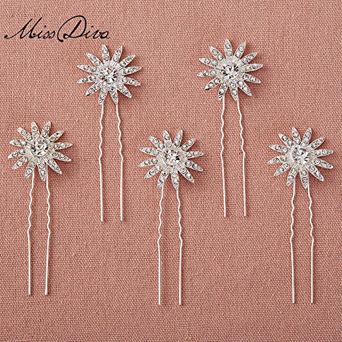 - Title : white Sunflower heronsbill Crystal bridal wedding twist hair Clips pin stick Miss-018 1pcs