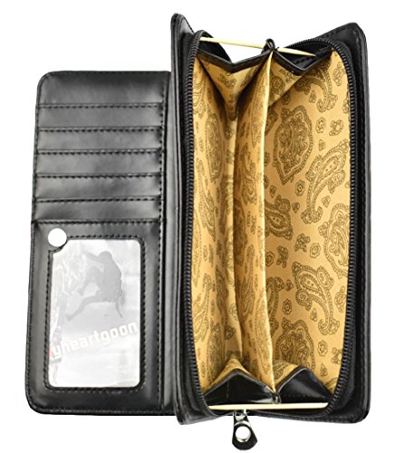 -. Feature : High quality PU leather,Soft and smooth,Comfortable feel and durability ,Beautifully patterned shapes, create a cute classic style, More convenient to carry / Dimensions: 7.5*3.5*1.2 INCHS, Internal: with 1 Photo/ID Window,4 Cash Holder,11 Card Holders / Open the cover style : zipper Velcro / Structure: Compartment with a zipper around for small important accessaries,coins,currency or bills / Can accommodate your bank card, change, photos, bills , coins ,mobile phone and so on