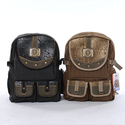 -. Feature : Trendiger Canvas Rucksack / Mit Kompressionsriemen und Steckverschluss / Gepolsterte Rückenträger / 2 Farben zur Auswahl