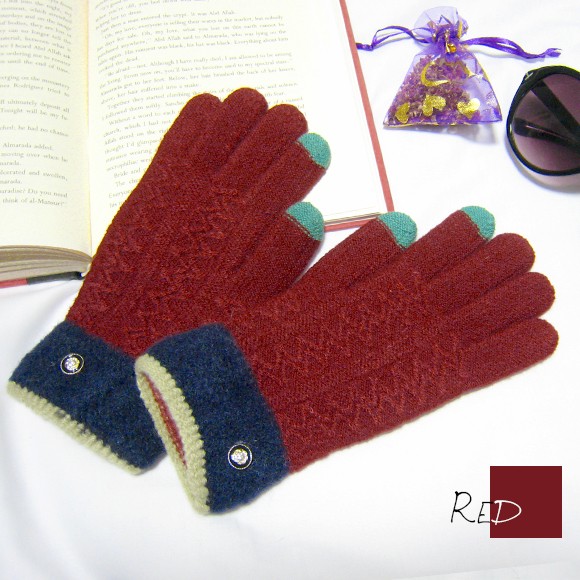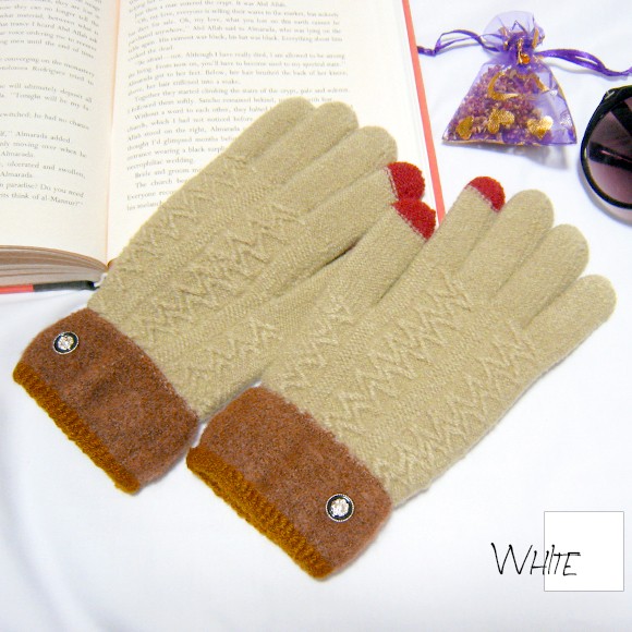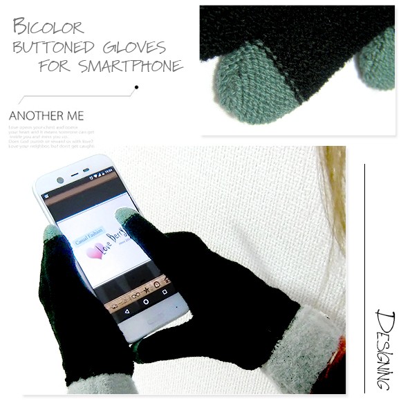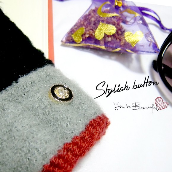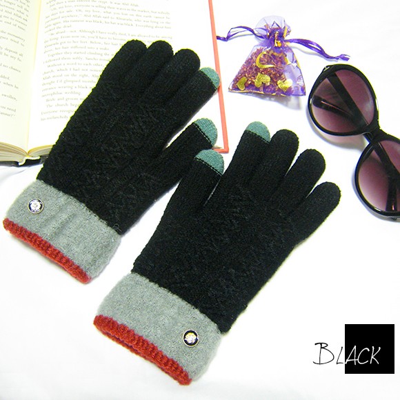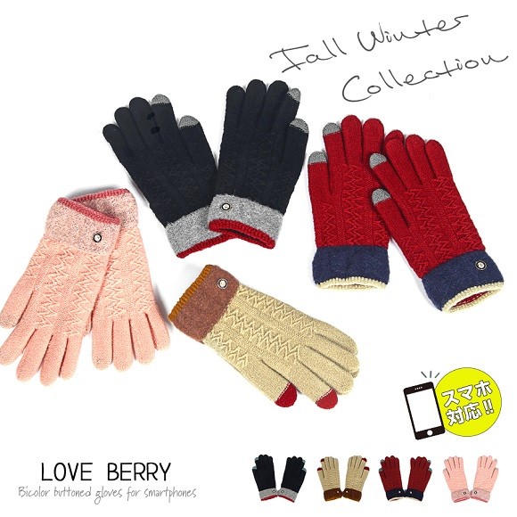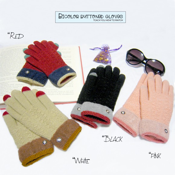 バイカラーとボタンがポイントのレディース用手袋です♪