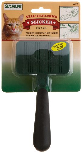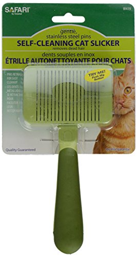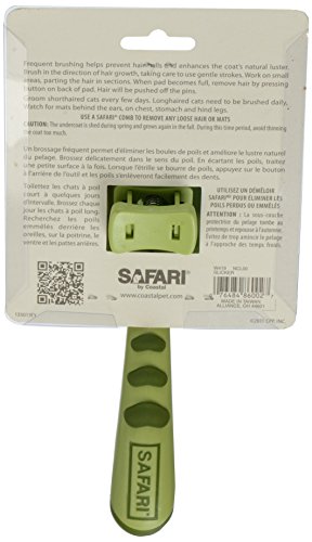 -. Feature : Provides excellent grooming results with minimal efforts / Stainless steel pins gently remove dead hair, mats and tangles, then retract for easy clean-up / Brush in the direction of hair growth, taking care to use gentle strokes. / Perfect for use with a Safari grooming comb or dematting tool