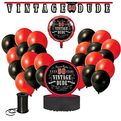 Vintage Dude 50th Birthday Party Decoration Bundle! 50th Birthday Celebration Decor Bundle Includes - Jointed Banner, Honeycomb Centerpiece, Balloons...