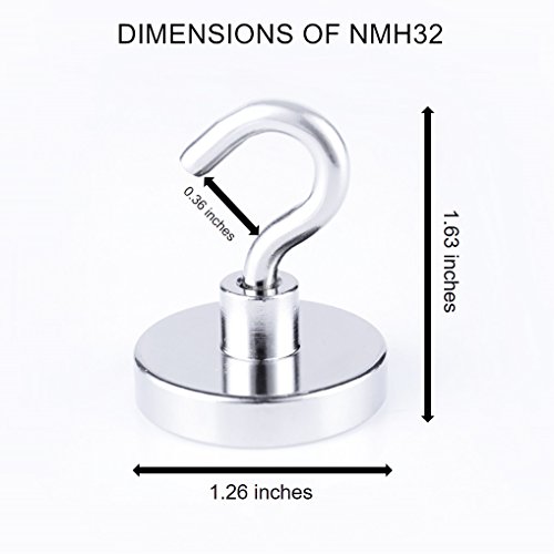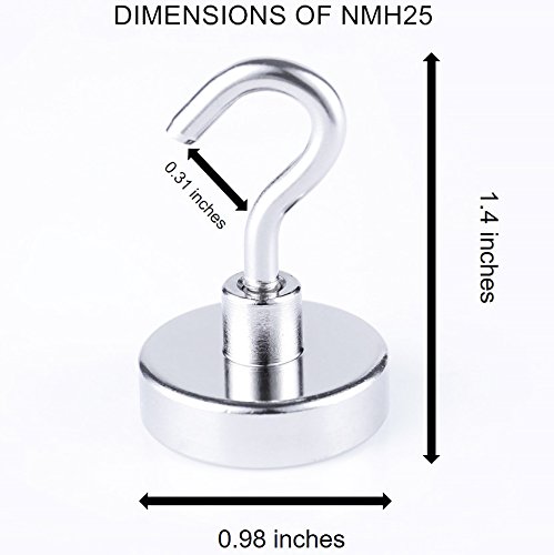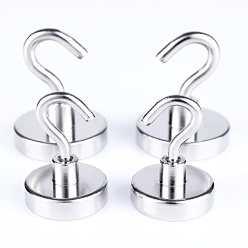61 LB & 105 LB Powerful Neodymium Magnetic Hooks Heavy Duty Ideal for Hanging Miscellaneous Household Items(Silvery White Pack of 4)