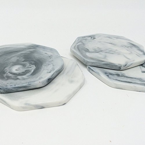 LovenCity Octagon White Marble Coaster,Set of 4 Stone Coasters, for Your Bar and Home Drinks