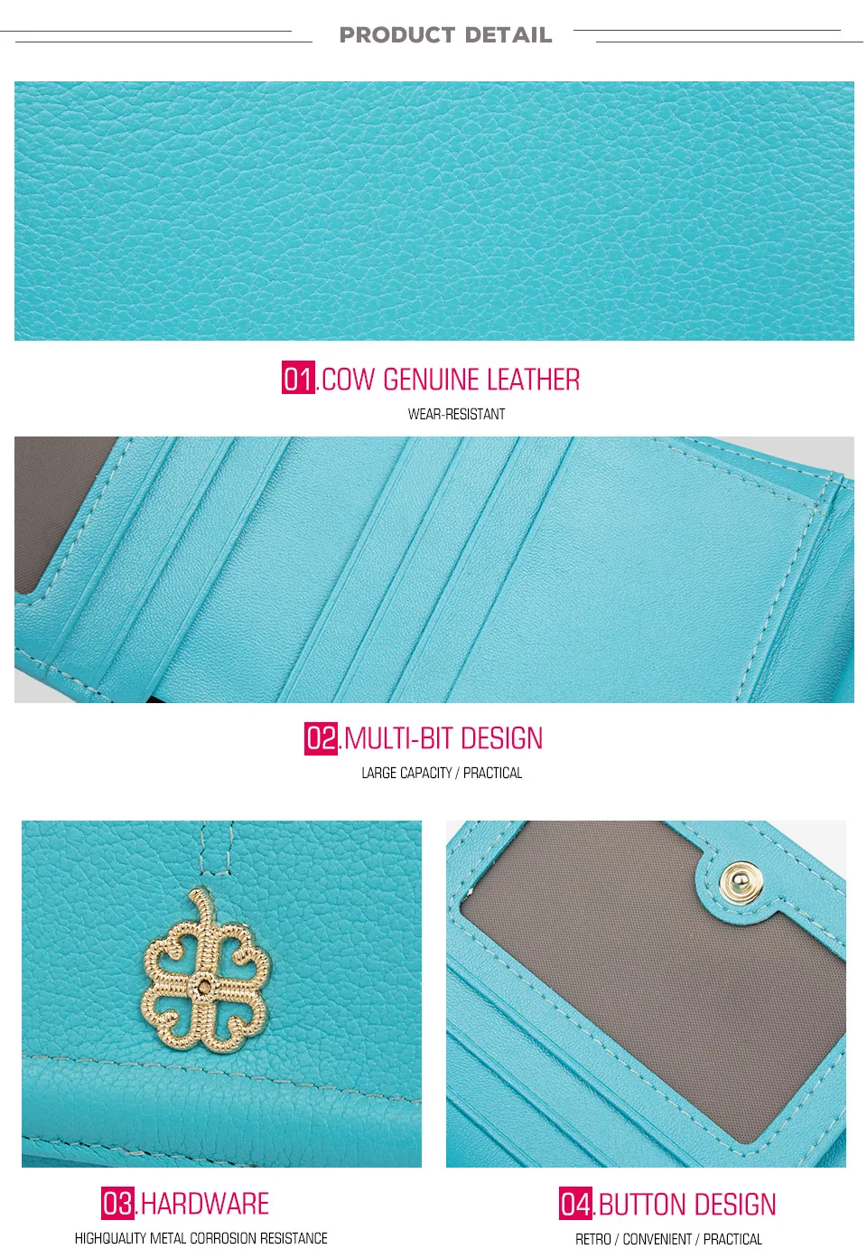 Interior:Coin Pocket,Card Holder,Photo Holder,Note Compartment