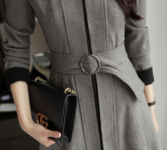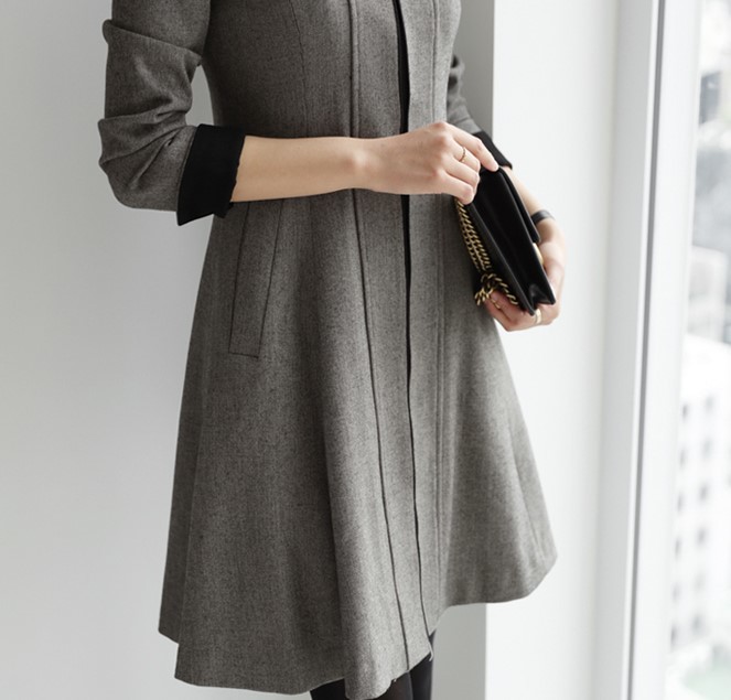 通勤やお食事会などきちんとしたシーンにも使えるひざ丈ワンピース。