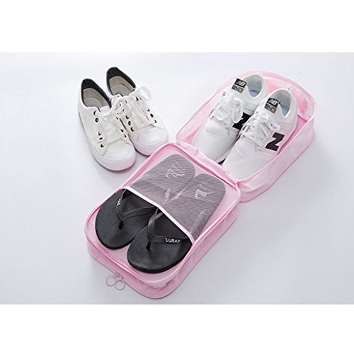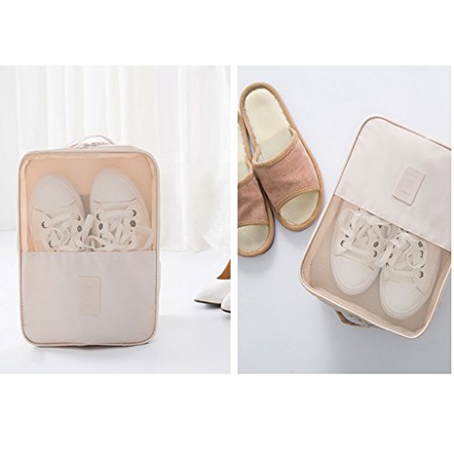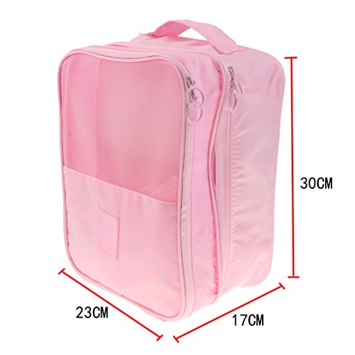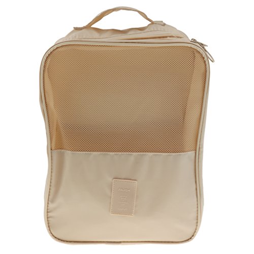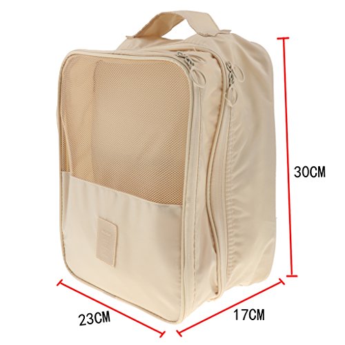 Description: - Made from high-quality nylon fabric; waterproof, breathable, anti-bacteria and dust-proof. - Zipped closure and portable widen handle designs ensure a secure and a convenient carrying. - Perfect layout with 2 separated compartments to avoid the shoes soiling crossly. the external haft mesh pocket is for cloth shoes or flat shoes; the internal pocket could store casual shores like slippers; the main pocket could store one pair of high-heels or sport shoes. - Easy to clean and hand washable, just use a damp cloth and wash away the dirt. Perfect for keeping your shoes dust free in the closet.