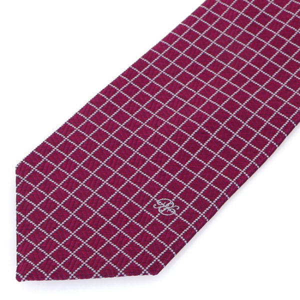 8cm 폭 와인 색상 기본 체크 넥타이로 노멀한 느낌