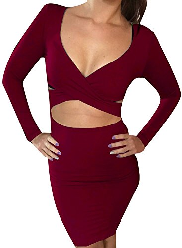 Basic Information: Sexy Long Sleeve Cut-Out Bandage Bodycon Clubwear Midi Dress