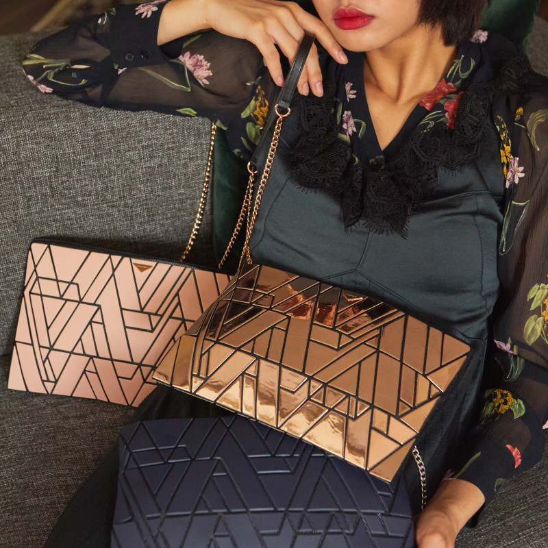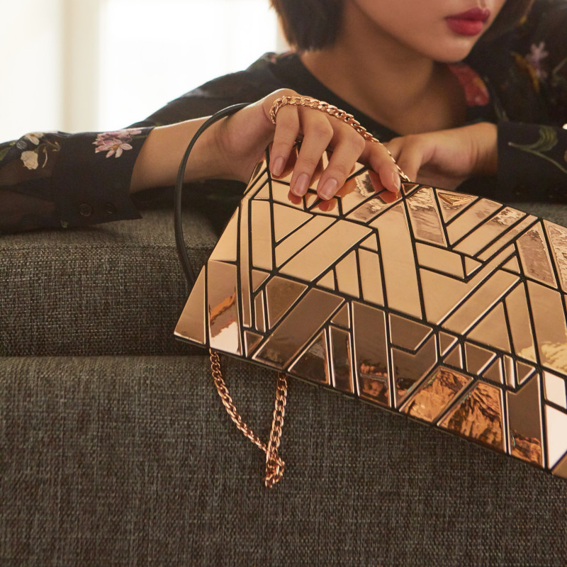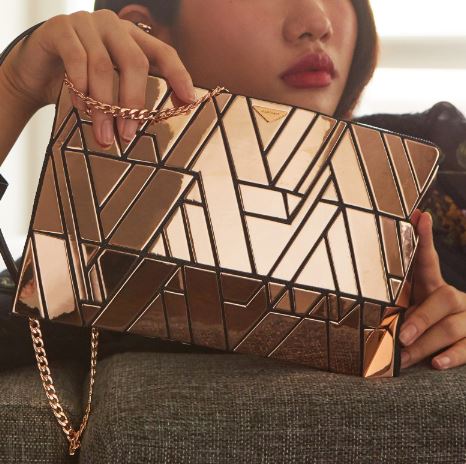 [KARAT] 핑크 기하학 음각 미러 클러치백
