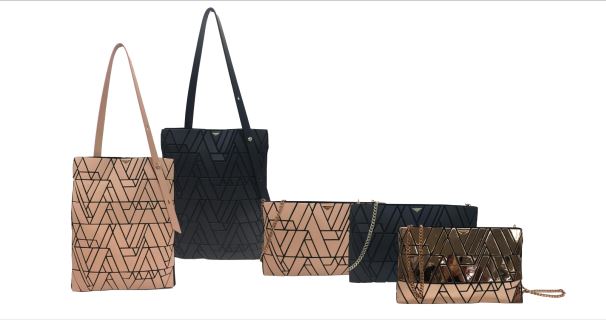 견고한 합성가죽 소재로 기하학 패턴을 음각 쉐이빙 한 유니크 아이템 입니다.