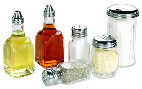 - Set includes 2 pc salt and pepper Shaker set, 1 cheese Shaker, 1 sugar pourer, and 2 pc oil and vinegar set