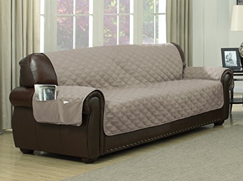 -. Title : Geneva Home Fashion Ashford Reversible Sofa Cover, Taupe/Mocha