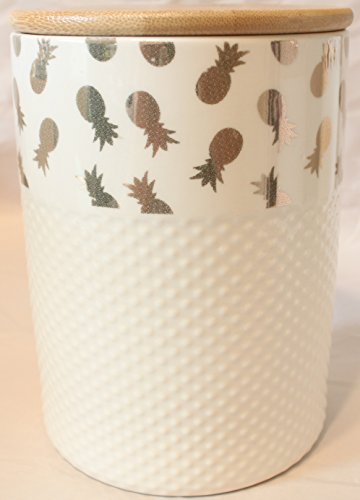 10 Strawberry St Air Tight Stoneware Ceramic Canister Embossed Dot Metallic Pineaple Design with Wood Lid Large