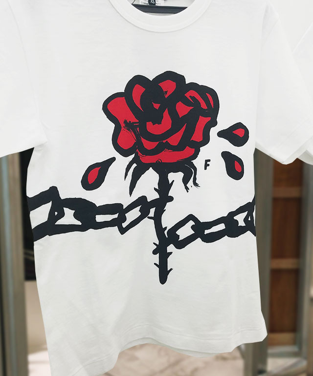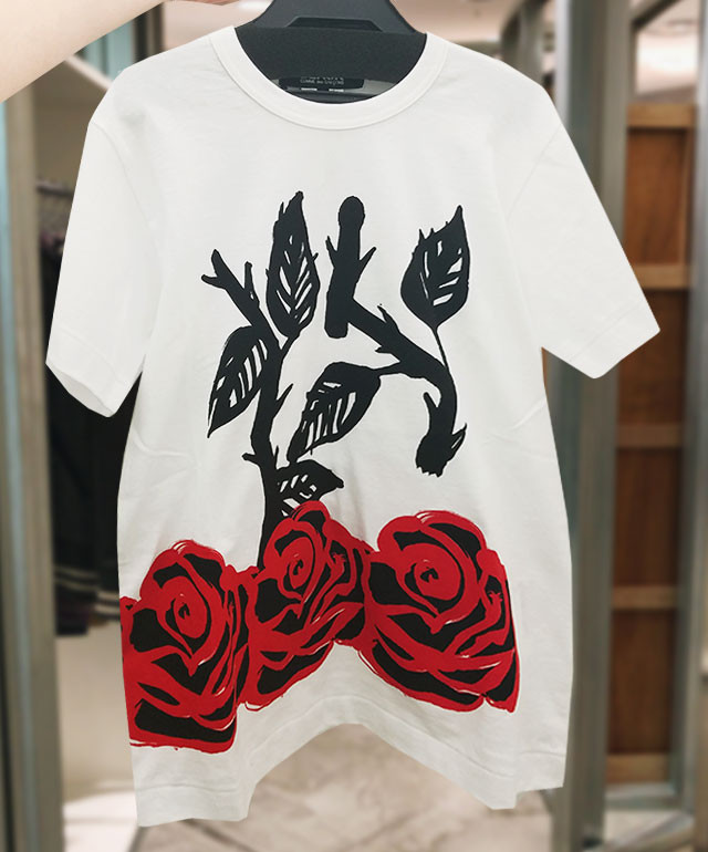 꼼데가르송 블랙라벨 로즈 반팔티셔츠