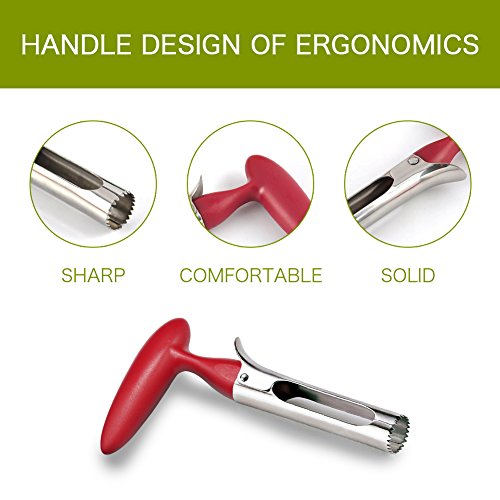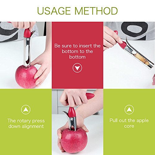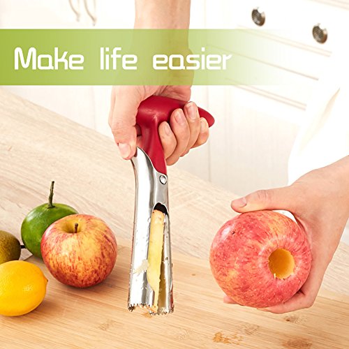 "An apple a day keeps the doctor away." Look to your health; and if you have a good healthy body,praise God and value it next to conscience; for health is the second blessing that we mortals are capable of,a blessing money can't buy. Choosing an apple corer will be necessary for you because of its saving time and effort function,which could efficiently speed up the cooking and baking of your every day life. It is also suitable for pear,bell pepper, tomato and other fruits. Apple corer is the perfect for any kitchen or baker, amateur or professional chef or cook. A must have gadget for all homes and kitchens. BARIHO Apple Corer, Good Grips Food Grade Stainless Steel Apple Core Remover with Sharp Serrated Blade will be your good choice as premium Kitchen Utensil Gadget for Coring. Easy To Use: ?1. Press the tool through the center of the Apple or Pear while in the closed position. The stainless steel serrated edge easily slides through the fruit's skin into the fruit. ?2. Pull the tool back out and the core separates out cleanly and efficiently - No damage to the fruit! ?3. Engage the unique lever with your thumb and the tool opens to release the unwanted center core - the core will NOT get stuck in the center like other corer tools - SIMPLE and EASY. Please Note:?As for apples with a crooked core,when you push the tool in the from the bottom of the fruit,please be careful that the serrated edge is very sharp and easy to penetrate the apple's skin. Package Includes: 1 x BARIHO Apple Corer 0 |