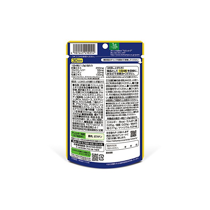 원본상품명: 井藤漢方製 しじみの入った牡蠣ウコン肝エキス 120粒