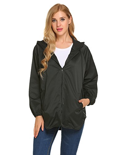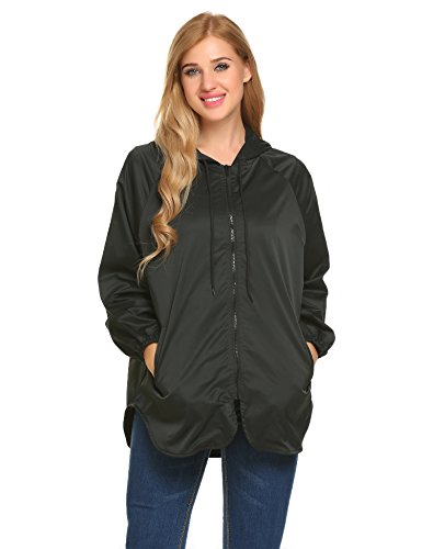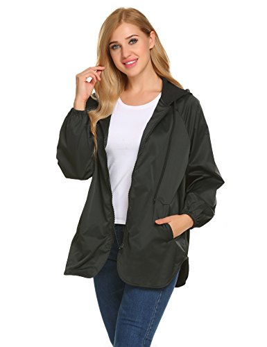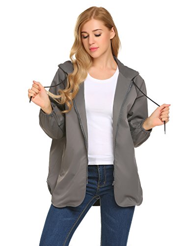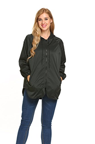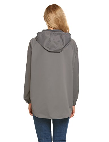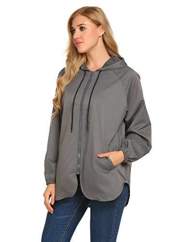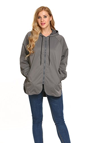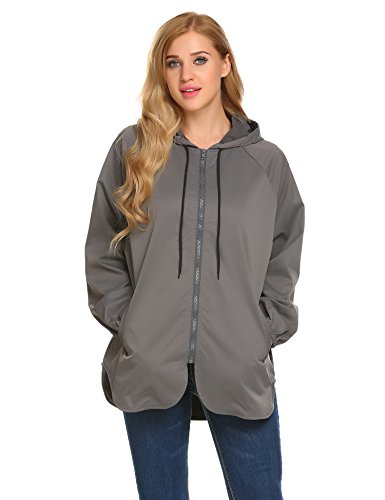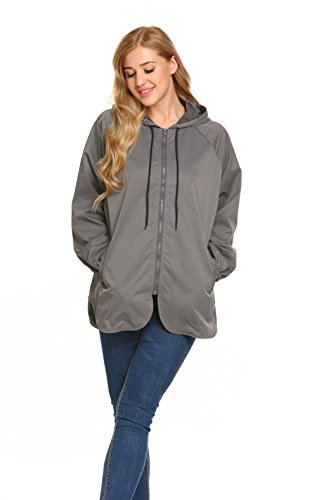Unibelle Women's Rainwear Active Outdoor Waterproof Rain Jacket Batwing Hooded Windbreaker,Deep Grey,Medium