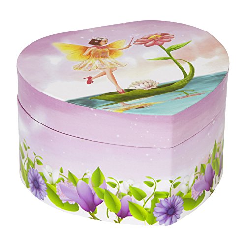 Heart Shaped Fairy with Flowers Musical Jewelry Box.