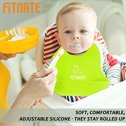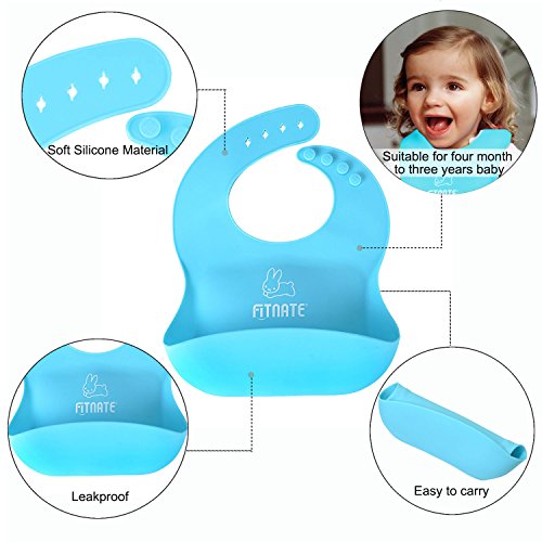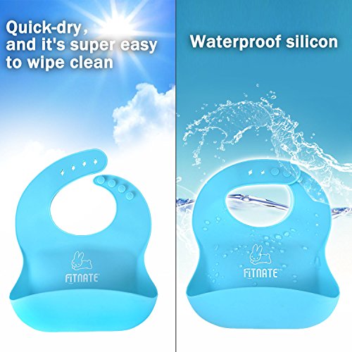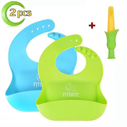 -. Binding : Apparel -. Brand : Fitnate -. EAN : 0757440654576 -. Feature : Make Feeding Easier: Includes 2 Baby Bibs +1 FREE Baby Training Toothbrush. The waterproof soft bid catches almost all of the food that your kids drop down with a wide deep pocket that stays open to catch food and drink spills. Silicone baby bib protects baby clothes perfectly. It definitely makes feeding easier! / Fits Great & Comfortably: The shape is wide around the shoulders with grooves around arms to allow your kids for comfortable movement. With adjustable 4 buttons, the baby bib fits great on kids aged from 4 months to 3 years. / Easy to Clean & Portable: The fast-drying silicone bib doesn't absorb water. This waterproof Baby bib is super easy to wipe clean with soap and sponge. It is flexible enough to roll up easily and toss in a bag without taking up too much space. / Safe & Durable: The soft bit made of food-grade silicone is FDA approved, safe and eco-friendly. It can stand against high temperature of 200℃ and can be stuffed into a bag without losing shape. The free toothbrush is a developmental toy for boys and girls stimulate teeth growth and relieve pain. Good for oral hygiene, use as toothbrush / Save Time, Water & Money: The baby bib effectively saves those cute, tiny baby clothes from falling food with a wide deep pocket design. Less mess and quicker to clean up. It helps saving time, water and money. This waterproof silicone baby bib is also a good present for your family or friends. -. MPN : 4327986959 -. PartNumber : 4327986959 -. ProductGroup : Baby Product -. ProductTypeName : BABY_PRODUCT -. Title : Silicone Baby Bibs, Fitnate Adjustable Waterproof Soft Silicone Baby Bibs, Fast-Drying Bacteria-Resistant Bibs for Babies Toddlers Baby Boy Baby Girl with Baby Teether - 2 Packs (Blue & Green) -. UPC : 757440654576