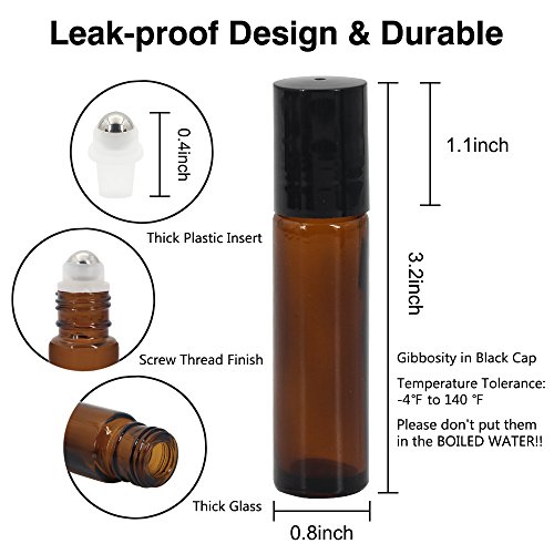 Set: 24pc * 10ml Color: Amber A refillable glass roller bottle will allow you to pre-dilute your oil blends so that they can be applied directly to the skin without messy drips or spills. This leak-proof, 10ml(1/3fl oz) roller bottles set with all the tools you need is convenient and economic. You can put it in your purse or suitcase to take it to wherever you want, and don't need to worry about the leaking problem. Package Include: 24 * Amber Glass Roller Bottles 6 * Extra Stainless Steel Roller Balls 1 * Essential Oil Opener 1 * Bottle Brush 3 * 1ml Dropper 1 * Mini Plastic Funnel 36 * Labels for Bottles 30 * Small Labels for Black Lids Specification: Materials: Glass Bottle, Stainless Steel Roller Ball Bottle Brush, Plastic Black Cap Dropper Funnel Size of Bottle: 3.22inch tall x 0.78inch diameter How to use the Essential Oils Opener: Step 1: Removing the orifice reducer insert: put the edge of the opener underneath the reducer and push down. Reducer would pop out. Step 2: Closing the orifice reduce insert: Once the reducer pops out, please find the suitable hole in the center of the opener. Then place the right hole on the top of reducer and press down. Warranty: 30 days money-back and 6-month worry-free Guarantee! Notes: 1. To protect your precious essential oils, this roller bottles set is leak-proof designed, so the black lids is maybe a little tight for the bottles, please kindly help to use more strength to screw it on. 2. Long-term use of essential oils can slightly corrode the roller bottle plastic insert. So we suggest you to replace the Stainless Steel Roller balls monthly. 3. Please do not wash the bottles with the water which is OVER 140 Fahrenheit. 4.The bottle brush may be a little clutter in the box, please take it out and after several hours, it will recover to great shape. 0 |