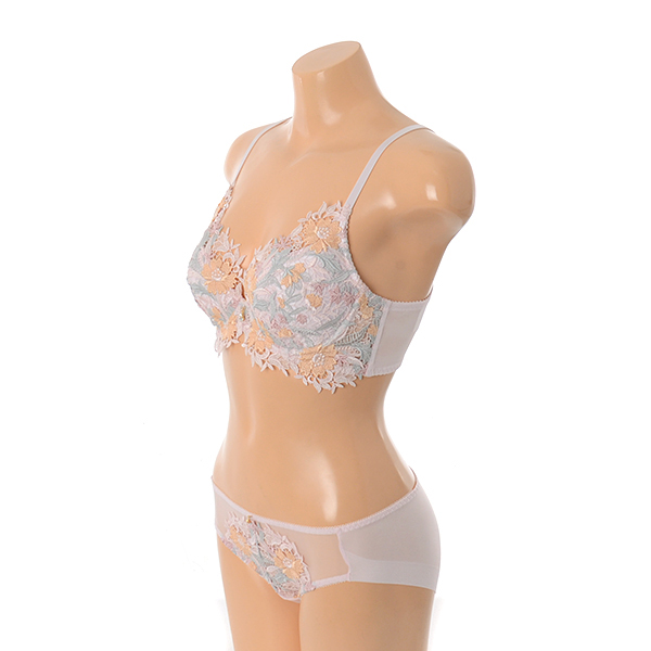 컬러 체인지 캐미컬 자수를 사용하여 화려하면서도 고급스러운 브라 햄팬티 세트 누드 컬러입니다.