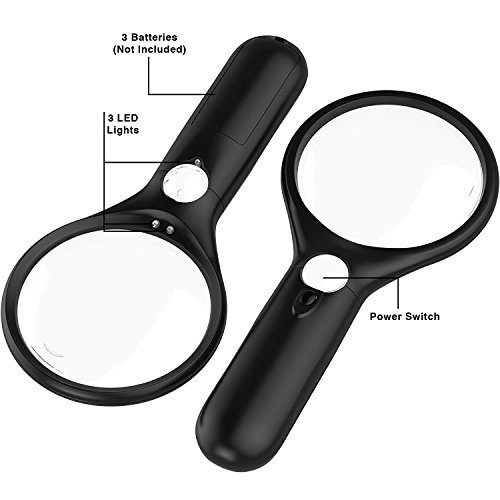 -. Title : Professional Magnifying Glass [3x 10x 45x w/ 3 LED Lights] Handheld Magnifier for Reading Maps - Best For Jeweler Watch Repair - Black (Black)
