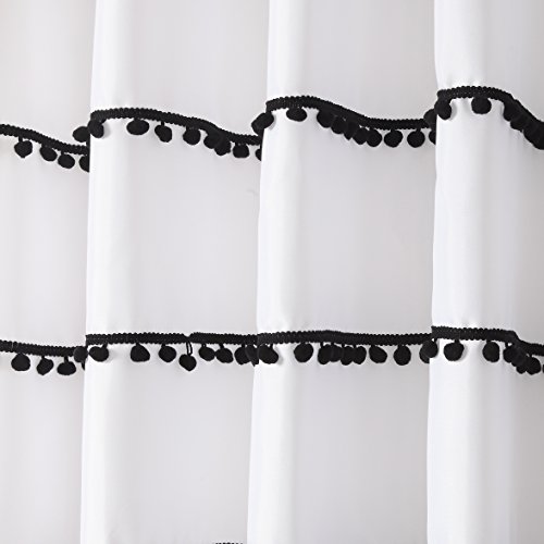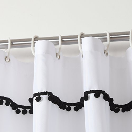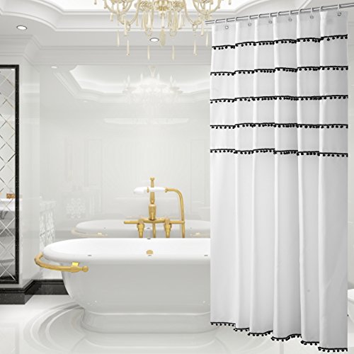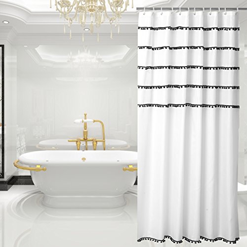 Yuunity Shower Curtain Polyester Fabric Mildew Resistant Water-Proof Non-Toxic Bath Curtain, 72x72-White with Black Tassel