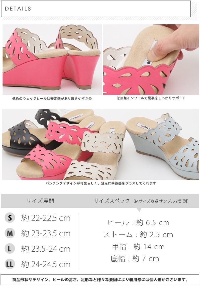 | サイズ | Sサイズ(22.5~23.0cm) Mサイズ(23.0~23.5cm) Lサイズ(23.5~24.0cm) LLサイズ(24.0~24.5cm) |